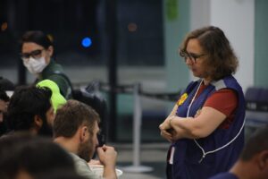 Ao longo de 2025, a Gerência realizou ações em parceria com órgãos públicos e Organizações da Sociedade Civil, atendendo em visitas domiciliares, visitas institucionais a migrantes internados em serviços de saúde, apoio nas ações de cidadania da Sejusc, oferecendo serviço de encaminhamento para regularização documental migratória e a participação em eventos nacionais.