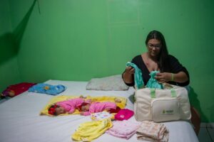 Ana recebeu os kits em uma das ações do Governo Presente, que facilitou o serviço à gestante, que na época já se encontrava com nove meses de gestação. Os itens possibilitaram os primeiros cuidados às recém-nascidas. “O kit me ajudou muito, os produtos são bons e me ajudam bastante no cuidado com as minhas bebês”, pontua.