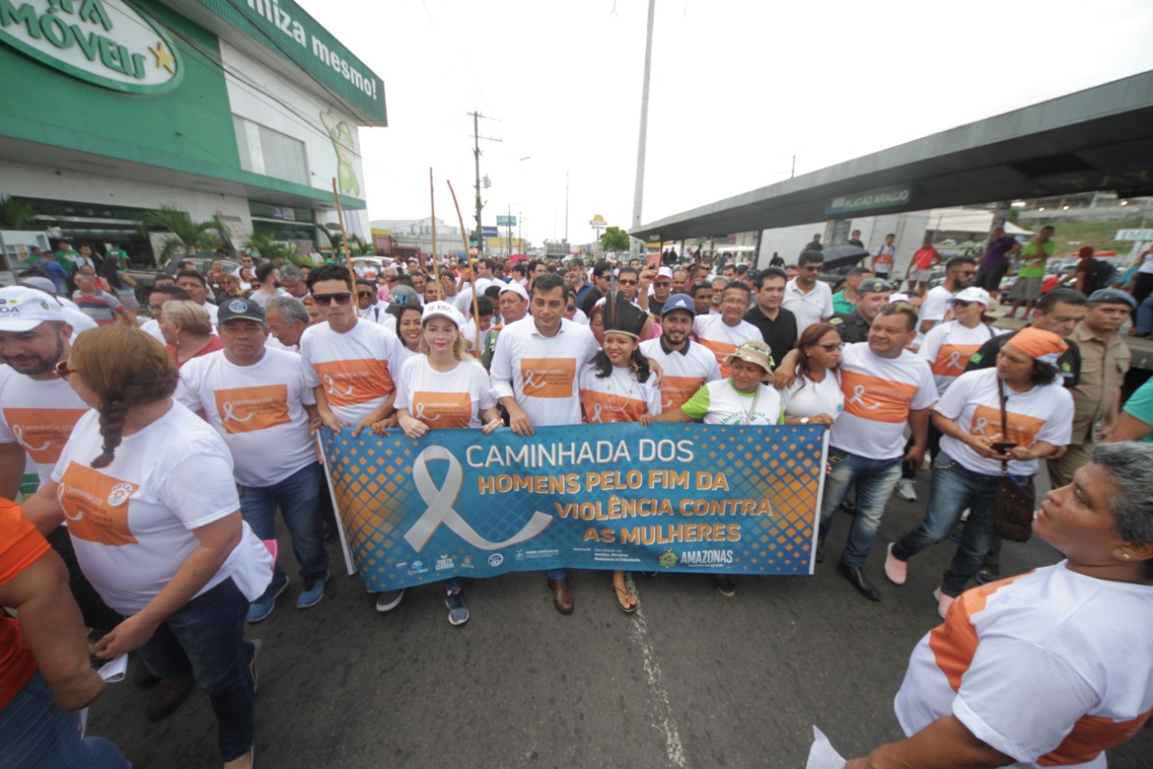O governador do Amazonas, Wilson Lima, participou, na manhã desta sexta-feira (06/12), da Caminhada dos Homens pelo Fim da Violência contra Mulheres, promovida pela Secretaria de Estado de Justiça, Direitos Humanos e Cidadania (Sejusc) como parte da campanha “16 dias de Ativismo pelo Fim da Violência contra as Mulheres”. A ação integrou a programação do segundo dia do programa “Muda Manaus”, que acontece até este sábado (07/12) no bairro Amazonino Mendes (Mutirão).